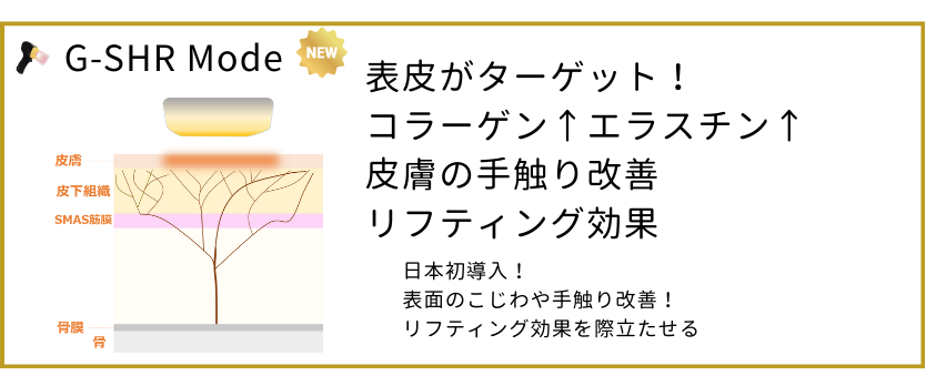 〇チタニウムリフトの3つの照射モード(G-SHR照射は当院が日本初導入)