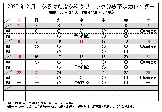 水曜午後は、美容皮膚科の予約診療のみとなります