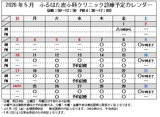 4月14日(火)午前のみ診療 古畑医師休診 新出医師の代診となります。(9時診療開始)5月1日(金)午前のみ診療 古畑医師休診 新出医師の代診となります。(9時診療開始)