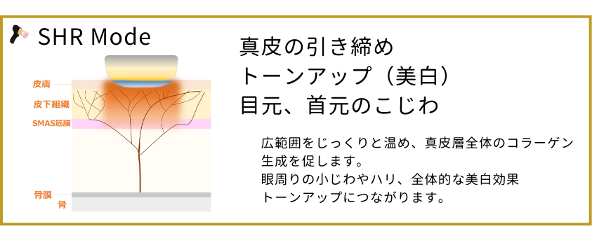 〇チタニウムリフトの3つの照射モード(G-SHR照射は当院が日本初導入)